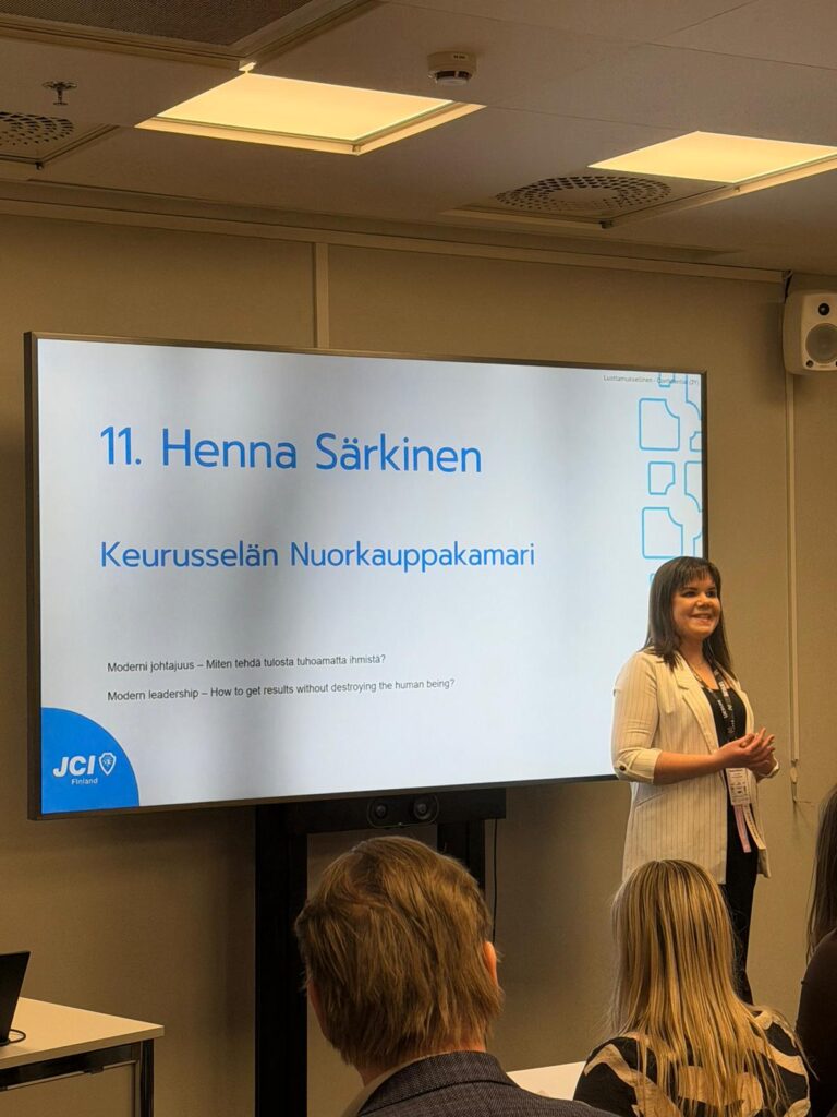 Kokemus vahvisti käsitystäni siitä, että Nuorkauppakamari on paikka, jossa jokainen voi kasvaa, ja jossa kasvu tapahtuu yhdessä. Olen valtavan kiitollinen siitä pienestä tönäisystä, joka sai minut lähtemään mukaan, ja siitä, että sain tehdä sen näin hienossa porukassa. Keurusselän Nuorkauppakamarin jäsenet ovat osoittaneet, mitä tarkoittaa yhteisö, joka nostaa toisiaan ylöspäin. On etuoikeus saada oppia, kasvaa ja haastaa itseään ympäristössä, jossa jokainen kannustaa, tukee ja uskoo sinuun jo ennen kuin itse uskallat. Tämä kokemus oli vasta alku, ja olen innoissani siitä, mitä kaikkea pääsen vielä tämän porukan kanssa oppimaan ja tekemään.